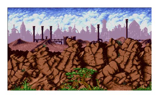 Background: Alert viewers may have perceptively surmised that by now, we knew there wasn't going to be a plot novella, so there was little point in attempting to logically explain the transitions between settings any more. Therefore, there's no obvious reason why our heroes have been in the desert for the last two levels, having previously roamed an alien mothership, nor has any ostensible method of transport been provided for the move. We just had to hope that by this far in, players had either been sufficiently convinced, or absorbed in the game, or just suspended their disbelief, not to be fretting about the lack of a coherent plot. But one existed in my head, and you'll be hearing it as this feature goes on ("And on and on and on, man" - Waldo 'D.R.' Dobbs).