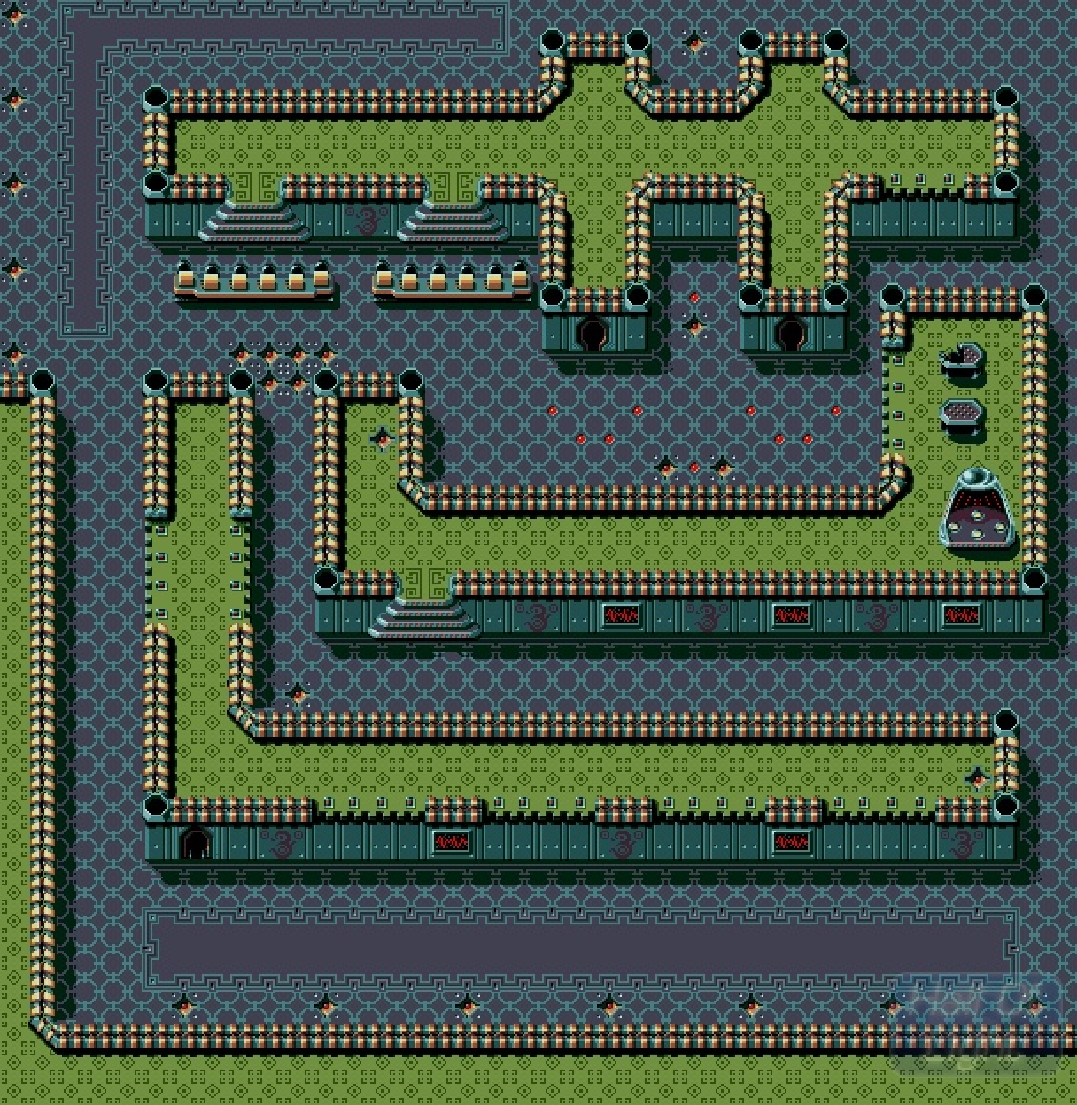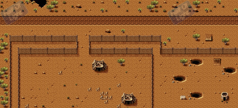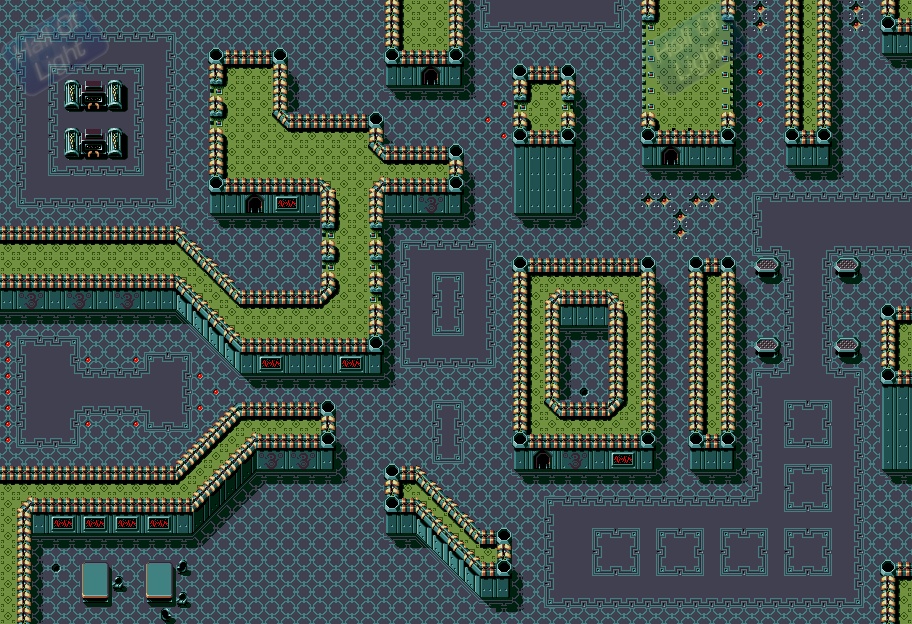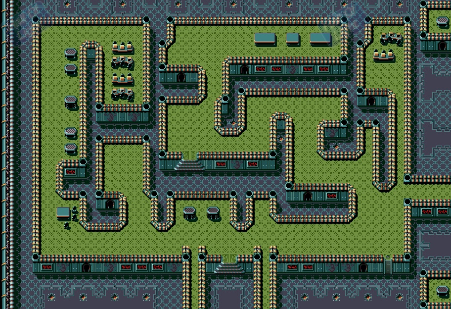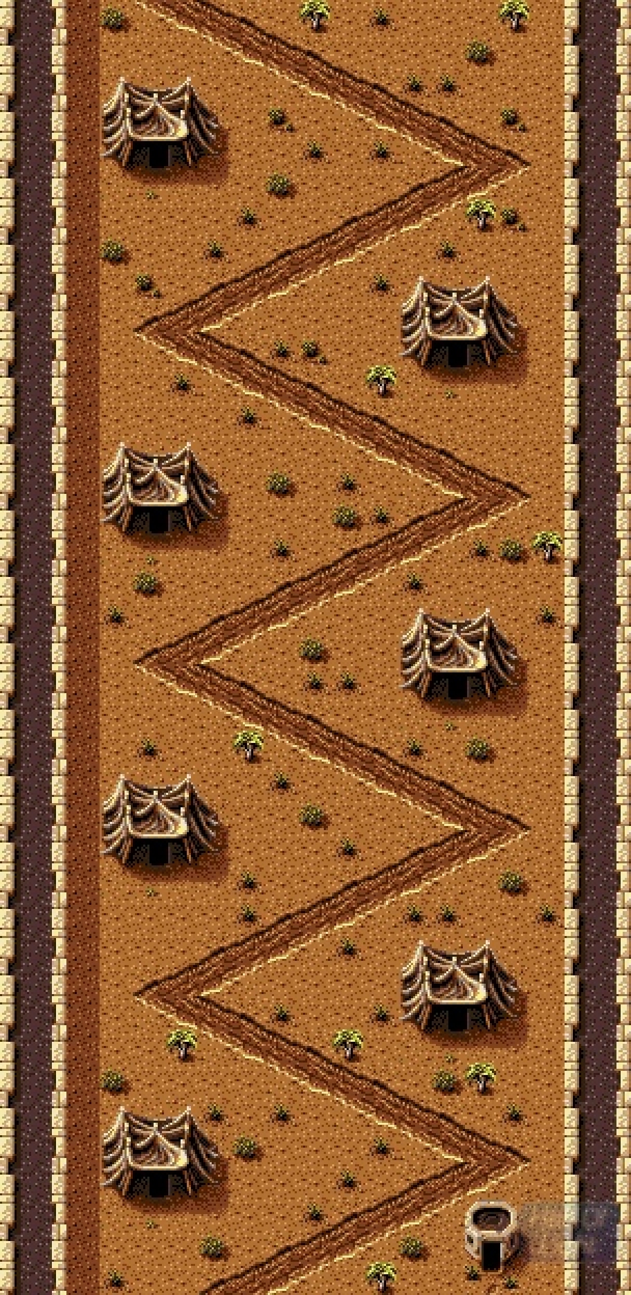 Mission info: First appearance of an enemy vehicle, the alien version of the jeep. Meant as an easy introduction, since at the bottom left there's an alien "conference area" where your troopers can hide in complete safety and lob a grenade over a wall to destroy the jeep without its ever being able to charge at them and run them down. Again, the stage name is intended to provide a clue, since the jeep is effectively trapped in the central area of the section, but it more obviously refers to two aliens stuck in a walled-off enclosure in the middle of the stage, there to lure the player into wasting a precious grenade (which can't be afforded in this level - the troopers have to lure an alien rocket-man into blowing up one of the generator doors as it is).