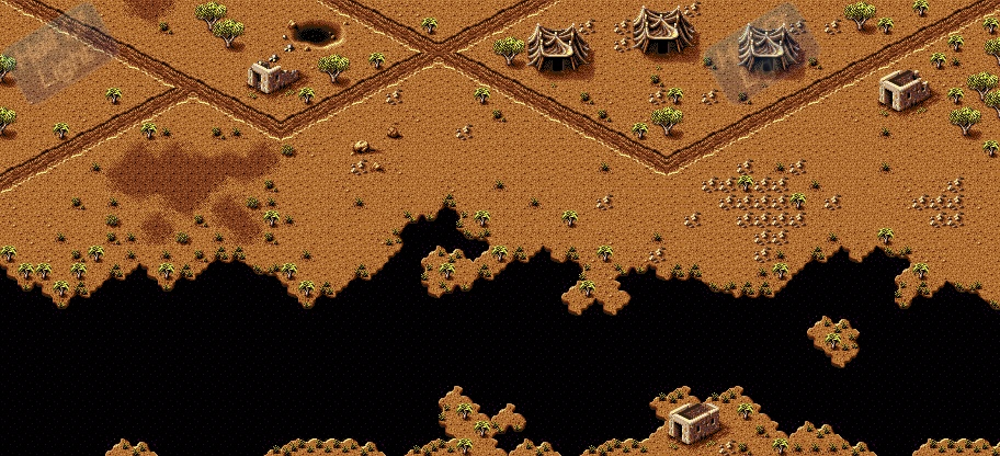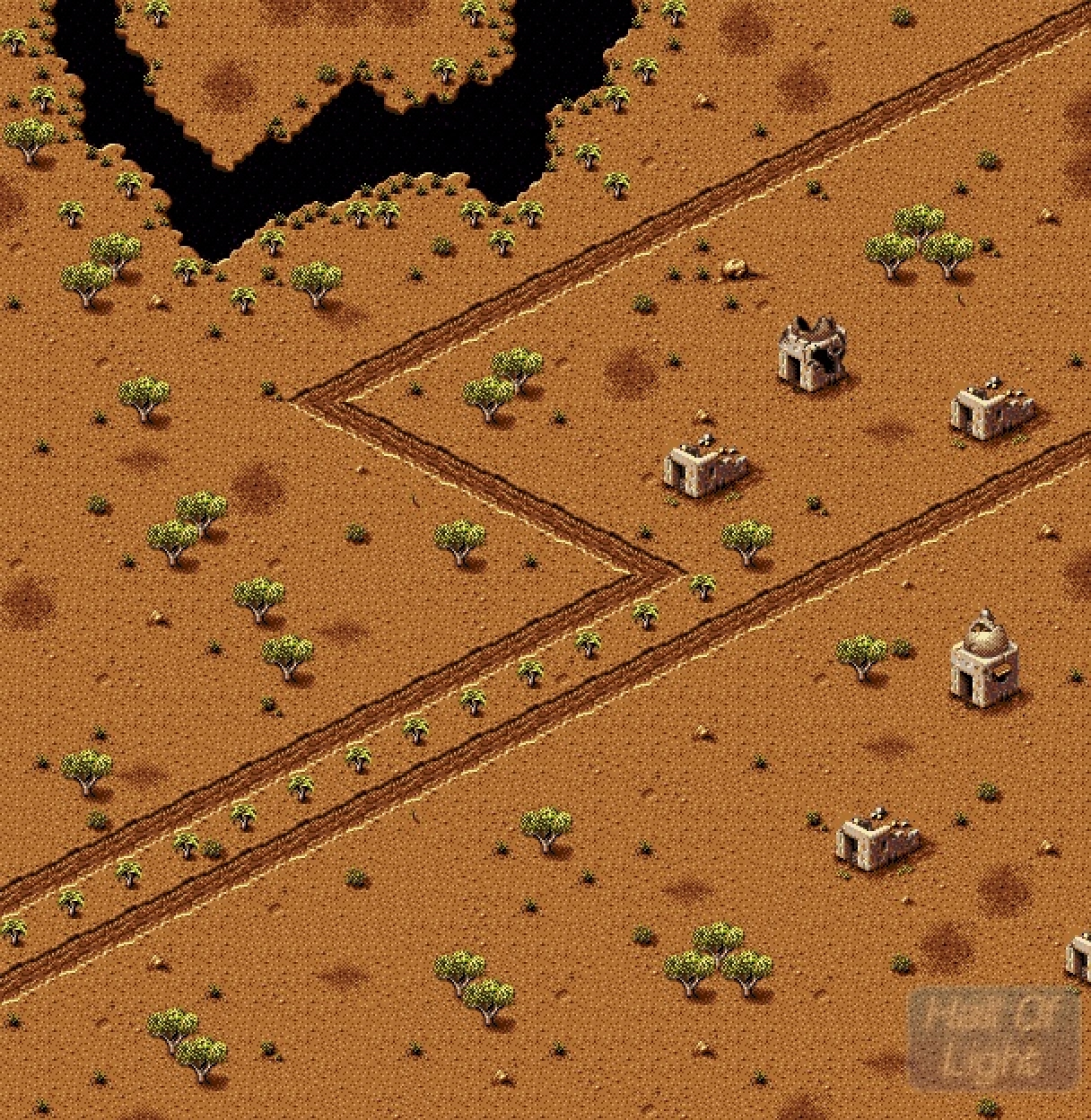 Mission info: The level itself is short and straightforward and meant to be pretty easy, albeit that it's liberally strewn with mines. As compensation, though, the same mines can wreak cathartic havoc on enemy troops and buildings when exploded with gunfire. The river of oil is pretty wide, though, so it can be a good idea to split your troopers up to make sure there's always some covering fire while you're wading.