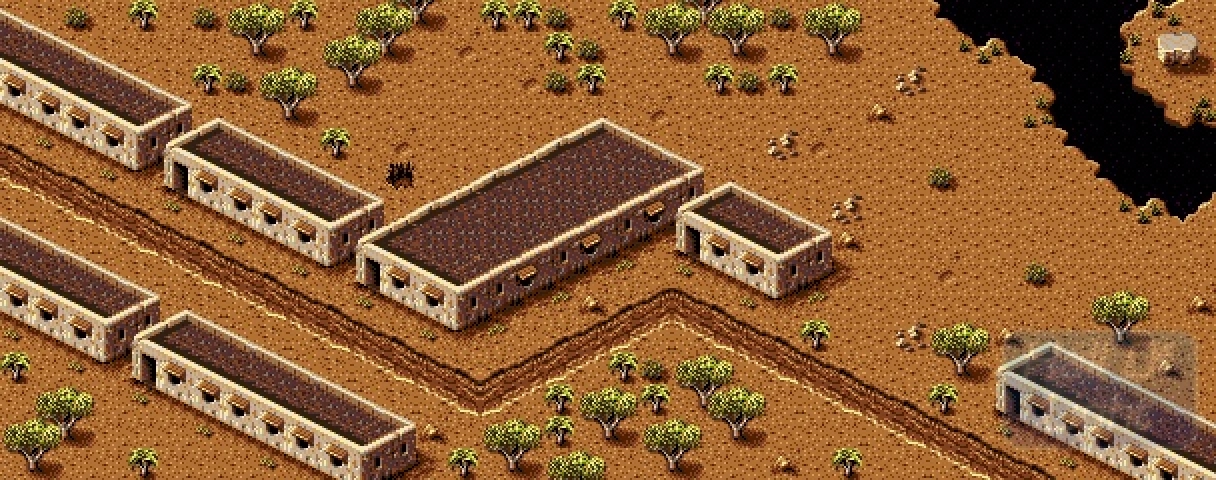 Mission info: This, on the other hand, was pretty mean, but I like it. As soon as the level starts, a huge flock of birds (hence the title) fly directly overhead, distracting the player from the rather more pressing matter of a massive tank just a few yards down a narrow street from the troopers. Yep, it's another "panic" level, and if the troopers aren't off the mark very quickly to collect the crate of rockets near the tank, they'll be wiped out in a blink. Not being completely heartless, I made the player's squad comprise only two troopers, so that lives wouldn't be lost due to the "trail" effect (since there was no time for the player to split off a sub-squad). The rockets are actually useless for taking out the tank (they're only for destroying the generator doors), but there's a player turret (making its first appearance in CF2) to the top right corner of the level that'll do the job nicely. Failing that, it's not too tough to get the tank to blow itself up in such a confined space.