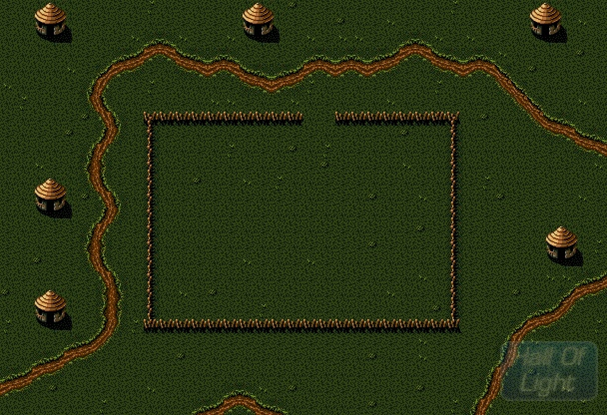 Background: This is a bit of a cheap level, to be honest. I liked the fence maze, which reminded me of those "Which wobbly walk through the bushes is George Best's bottle of vodka hidden at the end of?" drawings in children's puzzle books, but it's really only there to waste the player's time. If you take the natural route of looking at the top first, then going clockwise, you'll have had to do a lot of fighting, and probably have lost your trooper and had to restart many times, before you actually find the damsel. I can't remember whose mother she was supposed to be either. Let's say, oh... Oliver Cromwell.
