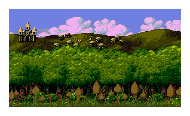 Background: I much preferred the medieval levels like this one which depicted settlements, rather than dark and gloomy woods - they had a lot more atmosphere. The damsels were supposed to represent the mothers of famous figures from Earth's past. By kidnapping them and preventing those people from ever being born, the aliens hoped to effect major changes in the direction of history and make the conquest of the planet easier by giving it a more compliant populace. Unfortunately, in the intervening time I've forgotten who the historical figures were. I think maybe this one was Wat Tyler.