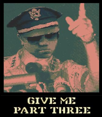 Background: Unfortunately, a small misunderstanding of the game's success conditions meant that players could simply load their squad (which, incidentally, was plotwise supposed to comprise the lone trooper and the damsel rescued from the previous level, now dressed as a soldier - someone had, indeed, given her a gun) into the battering ram and peg it at maximum speed to the end of the stage, then jump out onto the switch pads, immediately summoning the UFO and winning the level without having to shoot a single bad guy.