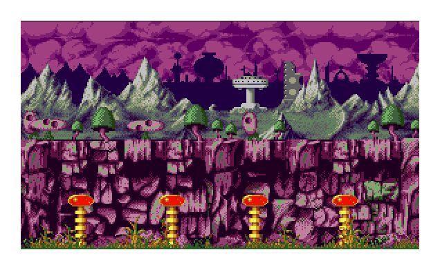 Background: On this level, the birds of previous stages were replaced by little ETs on bikes, which I always thought was a nice touch by JL. But anyway