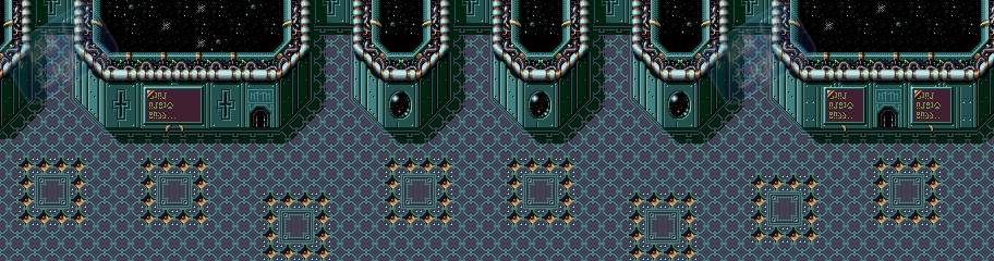 Background: Actually everything was hard to see against the patterned floor. I liked the look of the mothership levels, particularly the motifs on the walls and doors, but it's not hard to see why some people found it a bit painful on the eyes, especially in cramped areas with lots of narrow passageways and walls where a lot of stuff would be moving around. These are by far the worst levels for spotting aliens lurking on corners with bazookas and suchlike.