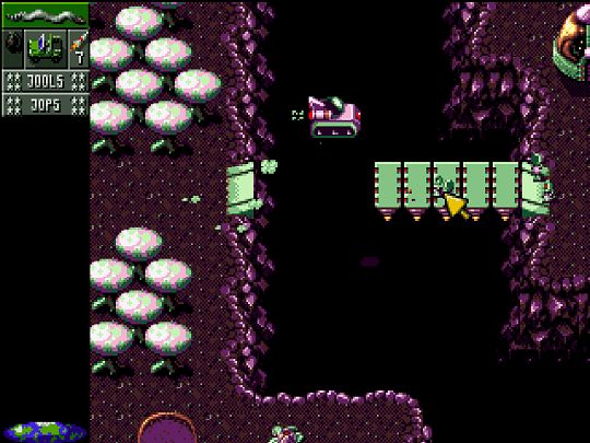 Background: The appearance of the alien planet also marks the first of the levels designed by Amiga Power competition winners, from which most of the alien homeworld levels were drawn. Most of them needed quite a bit of reworking by me to fit into the game, but the core ideas/designs for them belong to the readers. Accordingly, my ideas of what the levels' designers were trying to achieve in their stages might be a bit vague at times.