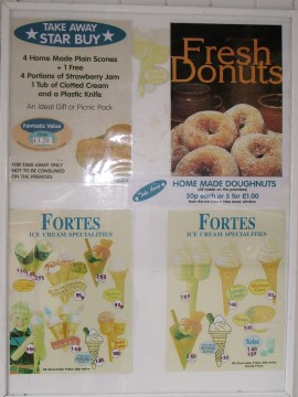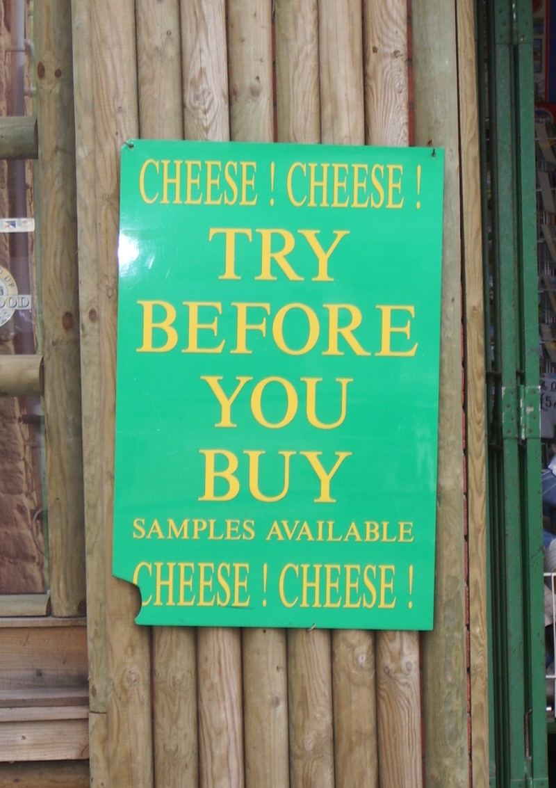 There's more cheese around here than you could shake a Jacob's Cream Cracker at, and after extensive sampling, your reporter elected to take home some genuine Cheddar-made Cheddar "With A Slosh Of Port", despite having always been under the impression that the Slosh was a kind of dance performed by drunk aunties at wedding anniversary parties. And very nice the cheese is too, as you might reasonably hope it would be at around £14 a kilo. With tastebuds enlivened by this sudden onslaught of sensation and with lunchtime approaching, it seemed like the ideal juncture to explore some of the town's many reasonably-priced snacking outlets in search of some more substantial sustenance.
