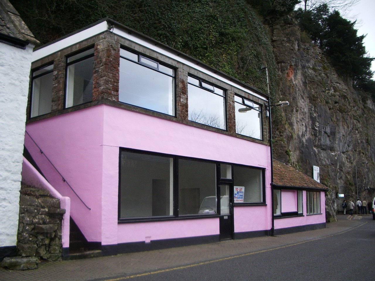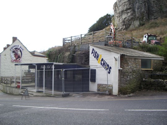 I'd been to Cheddar Gorge once before, many years ago, so I vaguely remembered its weird, 1960s kind of feel (though curiously, in my mind everything was in a mirror image of where it turned out to really be, things on the left side actually being on the right and vice versa). It's most striking as you enter the tourist part of the gorge, where at one end a ski-lodgey kind of building nestles snugly against the cliff-face, providing a shop, cafe and entrance to one of Cheddar's several cave systems. (Which, it being a nice sunny day, I didn't fancy venturing into.) The rest of the little town doesn't stick with this vaguely European architectural style, but what it does instead is rewardingly bizarre all the same.