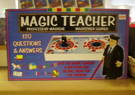 Toys are a popular recurring theme, too. There's a toy museum, a little toymaking factory and countless toy and model shops, most of them selling things your reporter had never seen anywhere else - dauntingly massive ranges of plaster Camberwick Green figurines, enormous comedy fire-engine sculptures and a "Magic Teacher" boardgame toy with a disturbingly shallow pool of expertise. Even in today's much-maligned British education system, WoS hopes that the average teacher has more than 120 answers at their disposal.