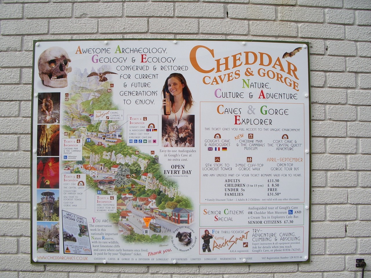 There's plenty to do in Cheddar Gorge, although you can't even climb up to the top of the gorge itself without paying for a ticket. Oddly, for what's ostensibly essentially a natural attraction, you can't get any sense of it just from being in the general location. If you don't cough up the cash, you could almost be in practically any little middle-of-nowhere slice of scenic English countryside, albeit one with an unusually high and vertical forested hill along one side (much of the main part isn't actually flanked by cliffs) and a weirdly artificial-looking river which is wide but very shallow and full of dense, shrubby plantlife, like someone's lawn just got flooded. But packed into the half-mile or so of the main street are enough diversions to keep even a skinflint amused for a good couple of hours.