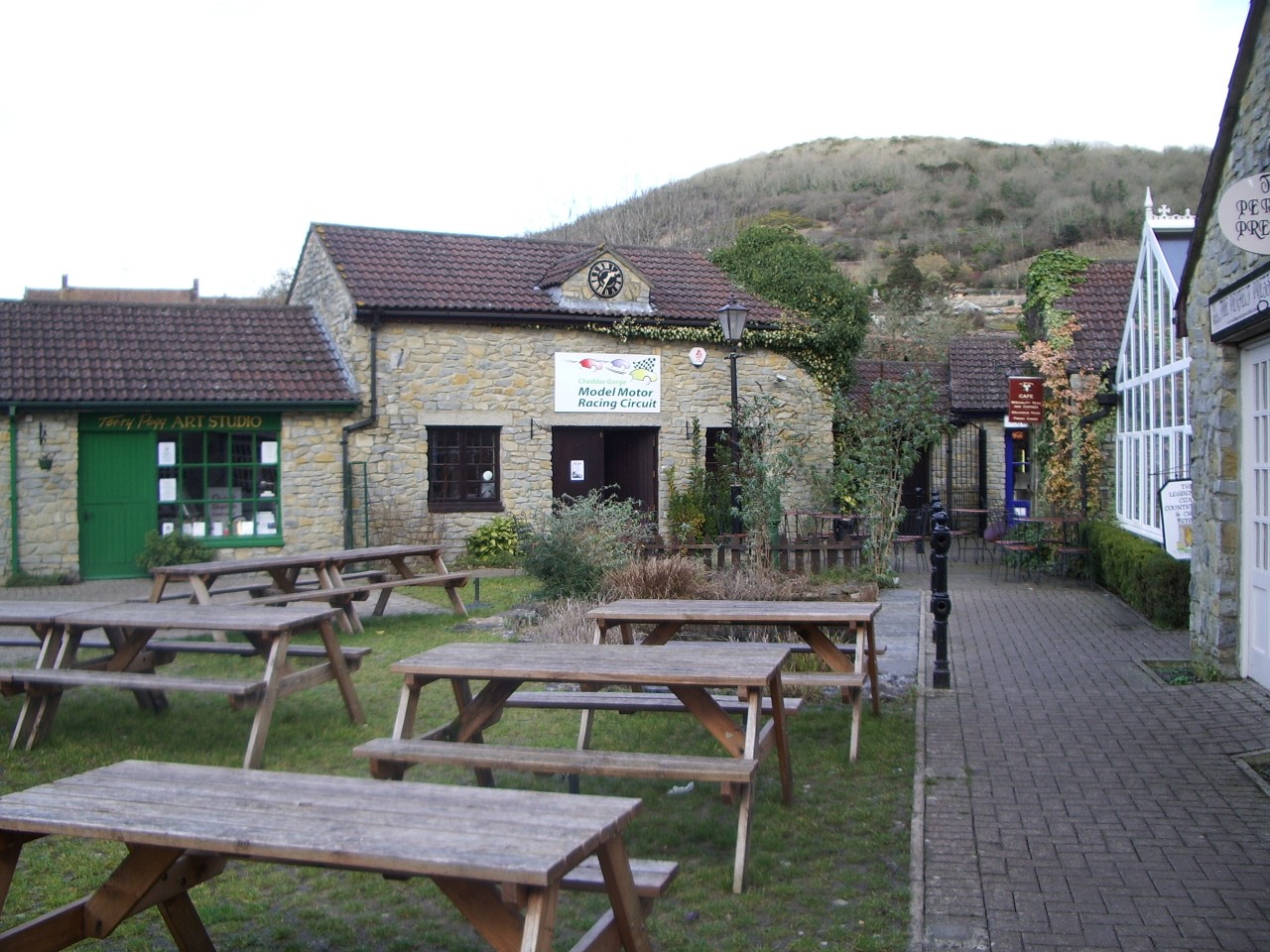 Gaming fans will also find plenty of entertainment in Cheddar. There's a not-all-that-crazy crazy golf course, accessed through a small, dark shed-like building which also squeezes a table hockey game and a prize quiz machine into its tiny space for optimum revenue-stream maximisation potential. And in another small, dark shed-like building at the other end of the village is the splendid Model Motor Racing Circuit, where several Scalextric-style slot racing tracks can be played for 20p a go, boasting advanced technical features like CCTV cameras which show you where your car is while it's going through a tunnel. Sadly, your reporter was the only customer, and bereft of opposition there didn't seem a lot of point.