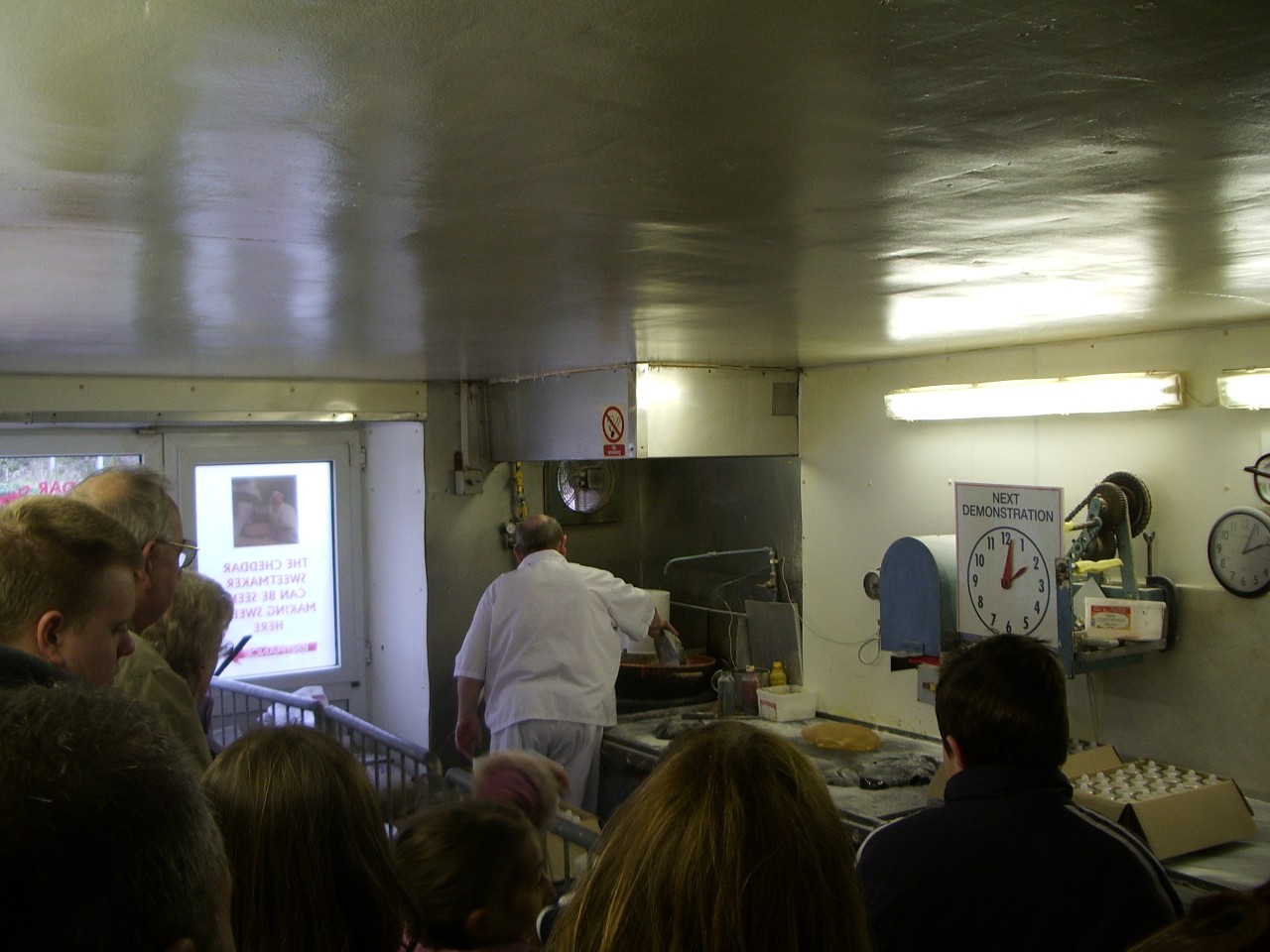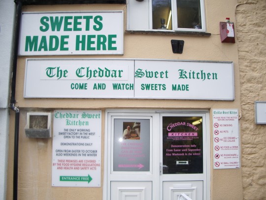 This reporter's favourite, of course, was the Cheddar Sweet Kitchen, where lucky visitors are afforded the opportunity to watch The Sweetmaker at work. This jolly chap toils away every half-hour or so in a cramped rock-making room so violently afire with eye-watering essence of peppermint oil that if you unleashed it on an army it'd probably be a war crime. I actually suspect that "The Sweetmaker" (portrayed as a much-loved, time-served veteran fixture of the confectionery business) is replaced every three or four weeks with an identically avuncular fellow hired from a special agency, each previous one having been blinded by the fumes, and probably suffering from badly scarred and burned lungs to boot.