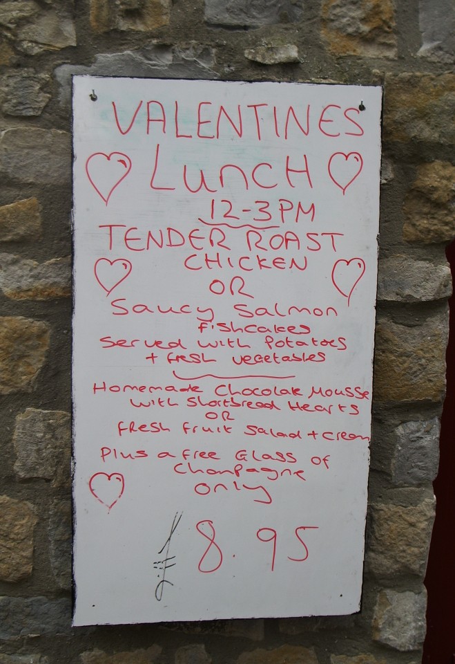 Like most destinations in the vicinity of Bath, Cheddar lies at the other end of a quite picturesque route through several small, clotted-cream-fudge-box English villages. You even get to cross the odd little causeway over Chew Valley Lake, on which numerous vehicles were parked even on a Tuesday morning in mid-February, enjoying the view and feeding the swans which congregate on the weir by the barriers. And as with all little English villages populated by local people, there's the occasional roadside eye-catcher to keep drivers alert.