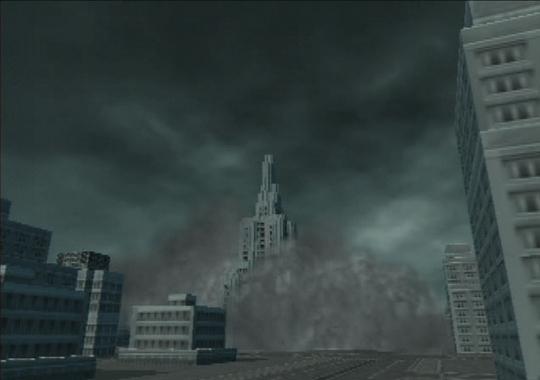 totally deserted city under a forebodingly black sky. It looks like