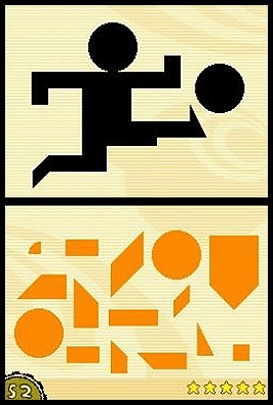 In BBA, you have to make the top picture out of the shapes below. In about five seconds.