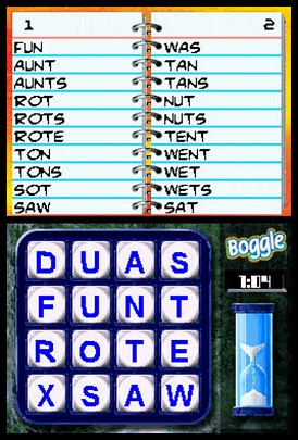 As for the rest of the compilation, Monopoly is pretty much exactly what you'd expect (ie slow and overloaded with superfluous animations), while Boggle - which ought to be perfectly suited to the DS touch screen - is hampered by a terrible vocabulary, sometimes failing to recognise the simplest of words. Yahtzee is the best thing here by a way, almost single-handedly rescuing the cart by the simple expedient of saving your high scores, giving you something to aim at the next time you play. Even then Atari have tried to ruin it, with a belief-defyingly inept interface (something common to all four games, featuring inexplicable cack-handed stupidities like having to sign your name by cycling through letters instead of just tapping on them) which somehow contrives to have you require both the stylus and the d-pad in order to simulate a pencil and a bit of paper, but this reviewer found it curiously addictive. With so many wonderful DS games out there you'd need to be out of your mind to put this at the top of your shopping list, but if you can pick it up in a bargain bin somewhere for £10, you'll just about get your money's worth from Yahtzee and Boggle. 5/10