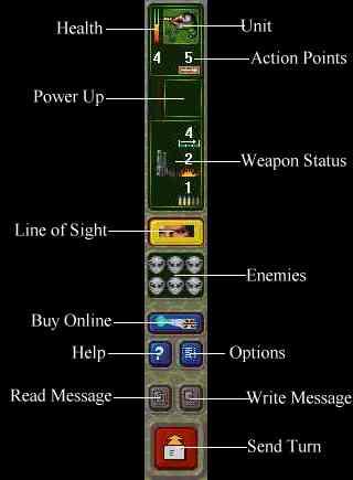 Left-click on any member of your group. The bar stops flashing, indicating that you have selected that unit. Now, look in the box at the left side of the screen. This is the Control Panel, and you should be familiar with the info here before you start giving orders.