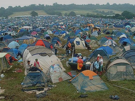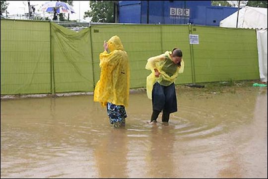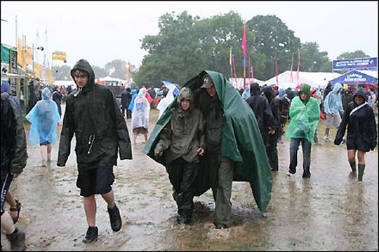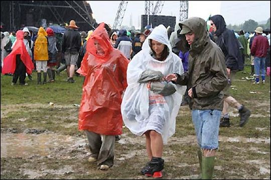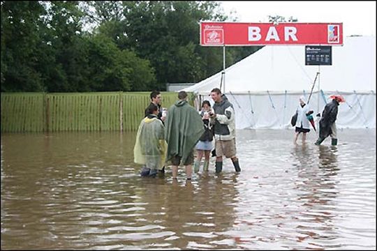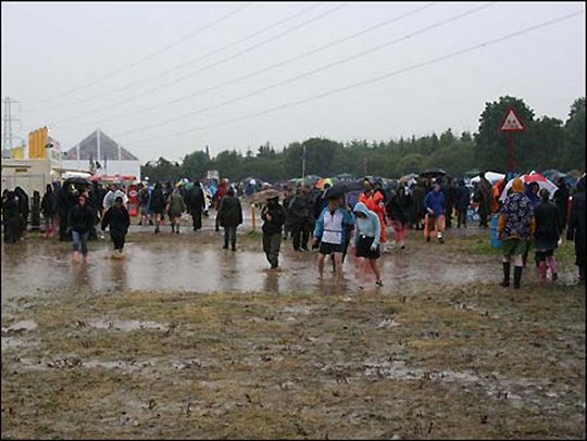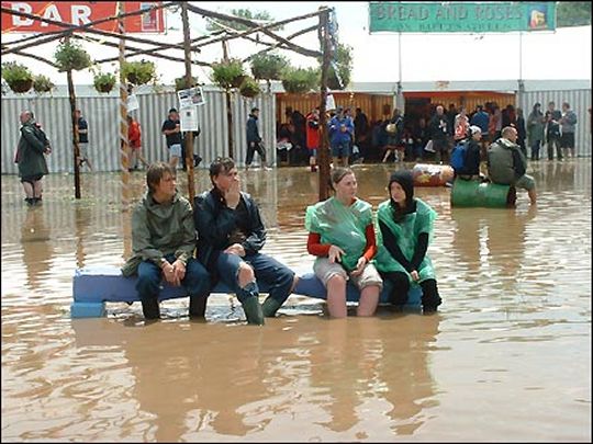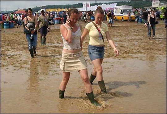 Share the experience of the still-raging storms with some chums via MSN. Turn on the TV news to see footage of large parts of the festival being swept away by dirty brown rivers of surging mud and rainwater. Watch for a while, then have a hot shower and get out feeling clean and refreshed.