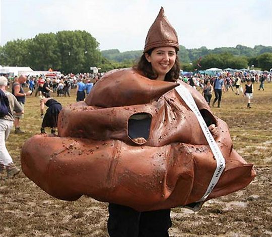 Glastonbury summed up in one picture - a human turd standing in a muddy field.