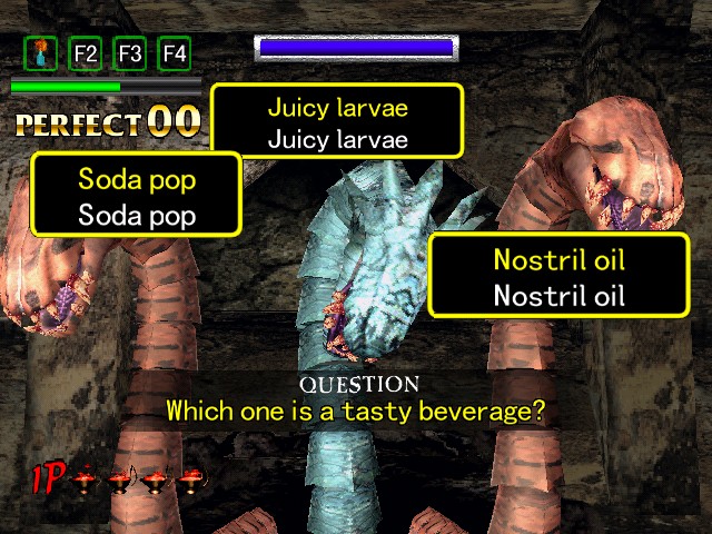 Beyond any rational doubt, The Typing Of The Dead is the funniest videogame ever made. It's based on Sega's classic arcade light-gun shooter The House Of The Dead 2, a game which - while cheesy - is also tense, atmospheric and in parts really quite scary. But by the simple expedient of replacing your gun with a keyboard and some random words, it suddenly becomes impossible to be disturbed by even the goriest assaults, or to react with anything other than a warm chuckle as a gruesome monster from under the sea jams a trident between your ribs when you fail to sufficiently quickly type "MAKE ME A HUMBLE APOLOGY" or "TELL ME A FUNNY STORY" at it to deflect its savage attack.