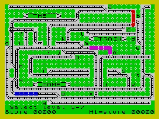 Microsphere's 1983 classic The Train Game wasn't a smash hit even when it only had about 50 other Speccy games in the whole world to contend with - it was released before most of the Spectrum's games magazines existed, though it did just manage to squeeze into the very first issue of Crash, where it appears rather bizarrely to have scored 75.5%. In an age of the exciting new opportunities offered by the Speccy's high-resolution colour graphics, the barely-beyond-ASCII visuals didn't seize gamers' attention, and even those of us still mired in more medieval times, playing our games on black-and-white bedroom tellies, couldn't enjoy it either because a large part of the gameplay was focused on colour-matching the various trains to their passengers, and telling seven shades of grey apart on a 14-inch portable was a task of distinctly limited fun potential when there was Manic Miner to play.