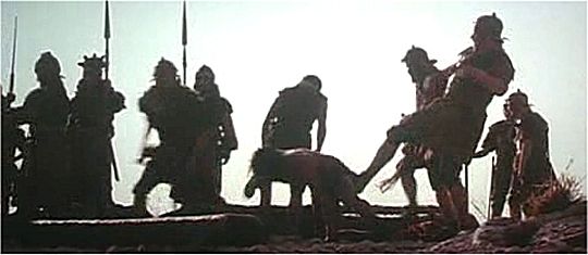there’s more beating by brutish and sadistic Roman guards, flogging through the streets