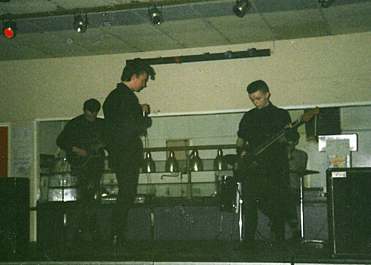 At some point during a grotesque, one-man-band-falling-down-concrete-steps rendition of "Spider In My Head", Pete's inner ear finally gave up what had clearly been a long and tiring battle, and the plucky percussionist tumbled backwards off his drumstool, off the stage across what was normally the serving-counter of the Union cafeteria, and disappeared from view. "Spider In My Head" not being a particularly drum-reliant number, the remaining three of us carried on and, freed from Pete's arhythmic influence, attained with heroic concentration what would in hindsight be the musical highpoint of the show. Flushed with this comparative success, we hurried into "When Will You Make Up Your Mind?" without troubling to wait for, or enquire as to the wellbeing of, our missing sticksman. We were on, relatively speaking, a roll and we wanted to seize the moment.