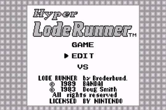 Even viewers who aren't all that alert may well be able to recall the very recent WoS feature on the splendid Gameboy Advance version of veteran platform game Lode Runner. In said feature, WoS viewers were promised something related to its vanilla-GB predecessor Hyper Lode Runner, and since WoS is the website that keeps its promises, here are some coconuts. (By which we mean, "another Lode Runner-related feature, and also an excuse for a really weak headline pun".)