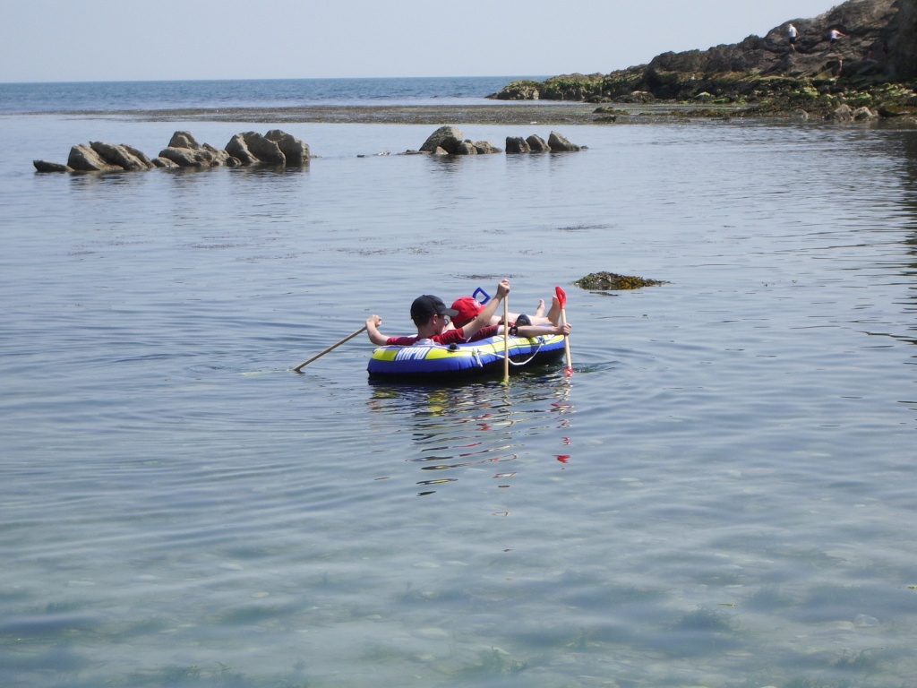The cove is full of clear, still water, with little pleasure boats constantly sailing in and out, and small children paddling, floating and splashing around while their tired-looking parents slump on the pebbly sand or the scrubby dunes and cling tightly to their ice-creams. A tiny little stream flows constantly across the pebbles into the bay, completing a picture so serene and perfect that you marvel quietly at the simple fluke of nature that brought it into being.