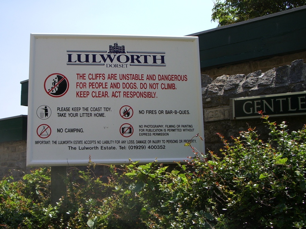 From here it's a very short stroll, past a rather unwelcoming sign and a small scattering of little stalls and huts selling buckets and spades and beachballs, down to the shore. Lacking anything in the way of high-octane thrills, Lulworth is very much a family resort, and if you're after a day of ogling bikini-clad young lovelies you've come to the wrong place.