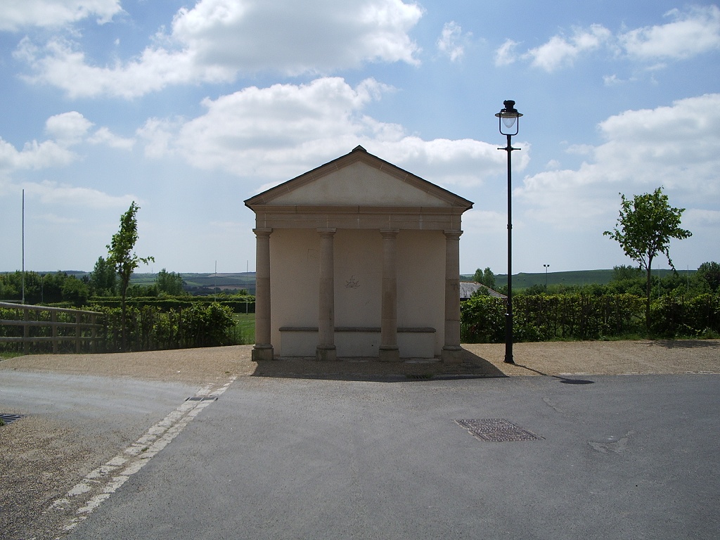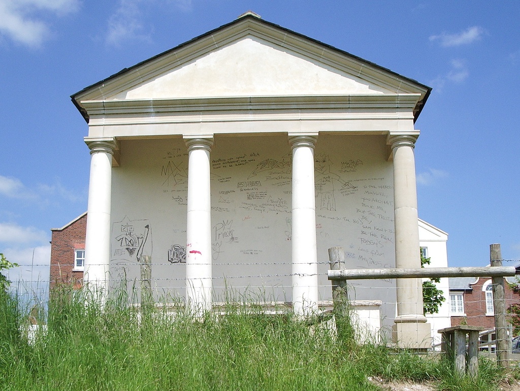 Visible about 100 yards away at the end of the road, right on the edge of town between yet another car park and a somewhat overgrown rugby pitch, was an inexplicable little Roman pavilion, standing all on its own. It was about the size of a bus shelter, but plainly wasn't one, and it appeared to serve no immediately-discernible purpose, other than to provide people with a seat with a view of the car park. Perhaps the builders just had some columns left over when they'd finished someone's gazebo or something.