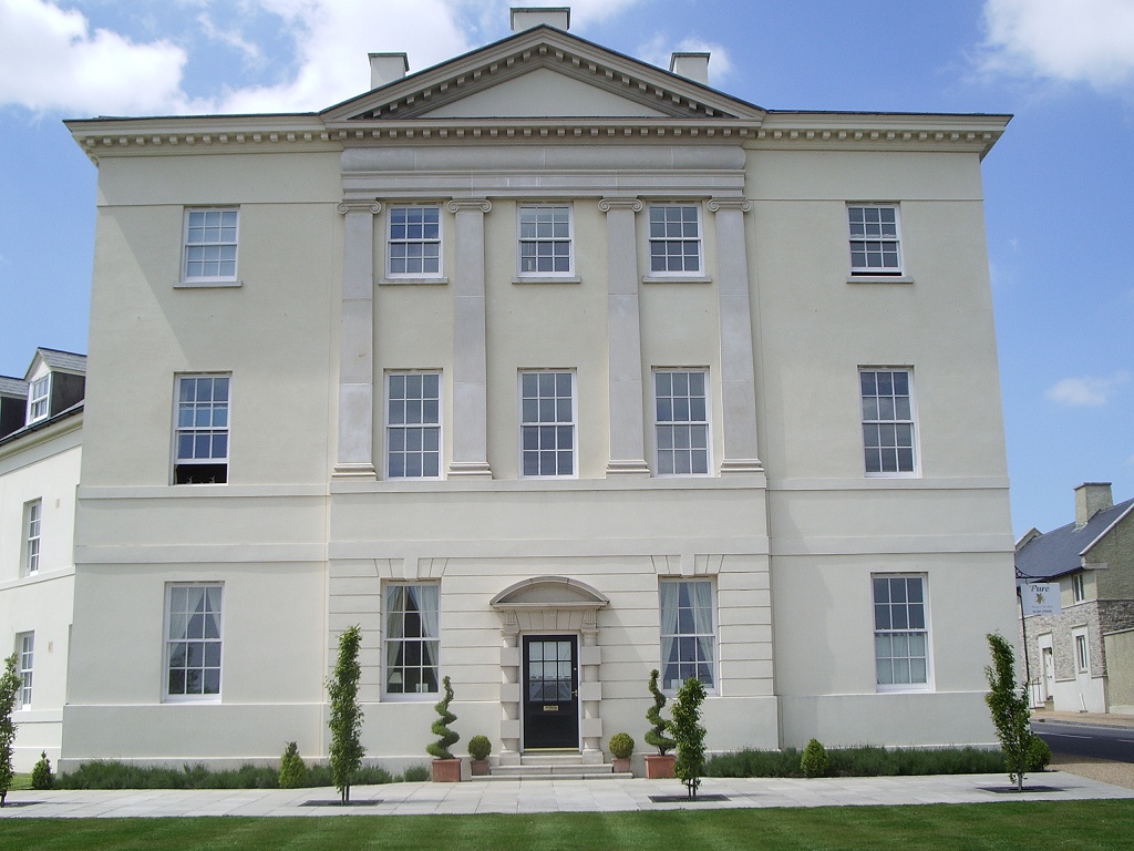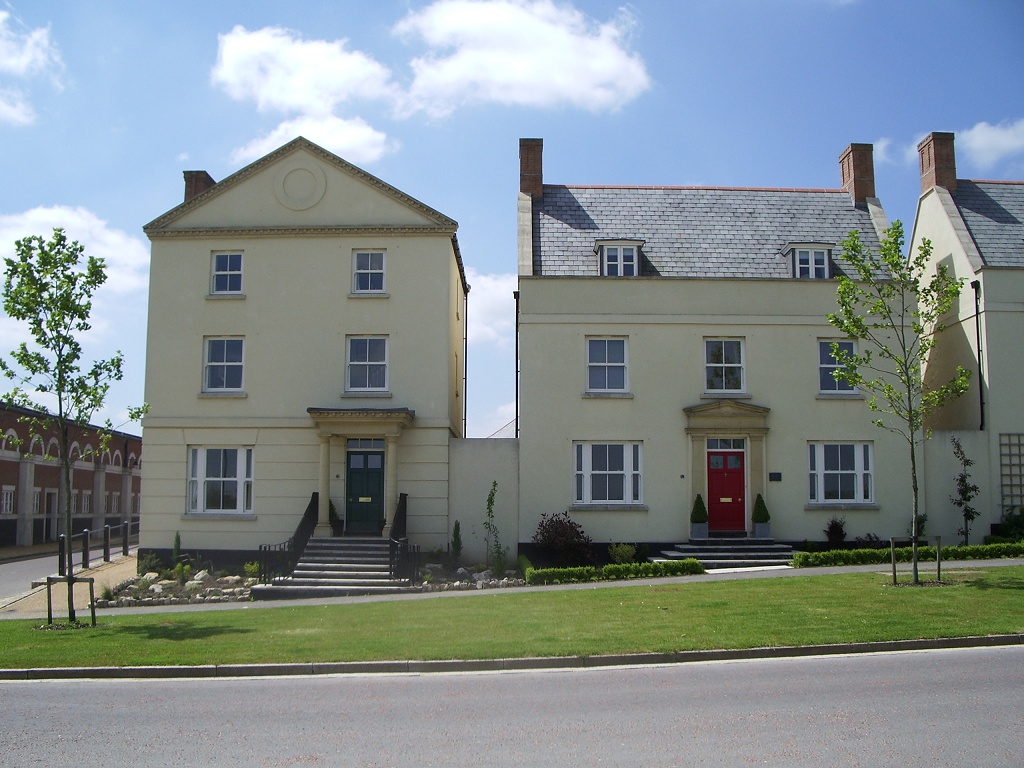 And sure enough, just across the road from the store, I finally spied one. A quick look in the windows provided the unexpected information that both rents and purchase prices in Poundbury were, if anything, slightly below the corresponding rates in Bath, but it was glancing down to the end of the street that brought the real surprise.