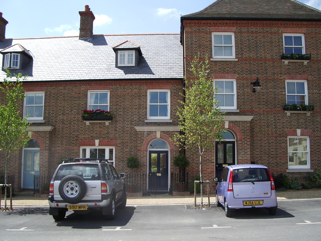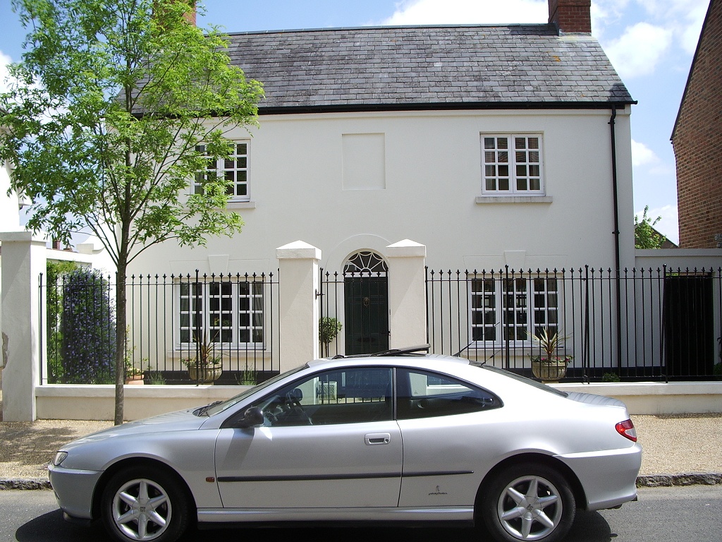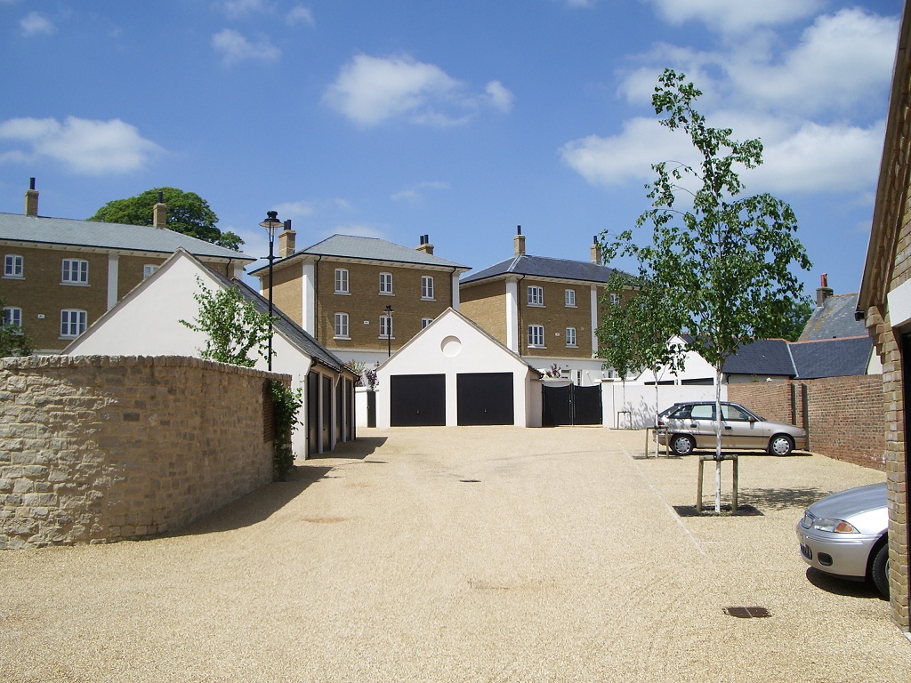 The other sense in which Poundbury feels different to almost anywhere else in Britain is how car-friendly it is. In fact, we're not talking "friendly" so much as "subservient". This is somewhere built from the start on the premise that every family will own at least two cars, and so will everyone who might ever come to visit. Accordingly, there isn't a parking meter or a double yellow line to be found anywhere in the village. You can pretty much just stop wherever you feel like it, get out and leave your car there indefinitely. In addition to generously-proportioned free public car parks, there are plentiful garages, comically ornate drives, expansive back yards, and plenty of room in front of every house for residents' own vehicles. (Nowhere here will you find that omnipresent curse of even modern urban housing development, whereby a brand-new purpose-built block of 20 "executive" flats will have exactly 20 parking spaces, plus a grudging two for "guests" that you have to book six months in advance if anyone should ever want to come and see you.)