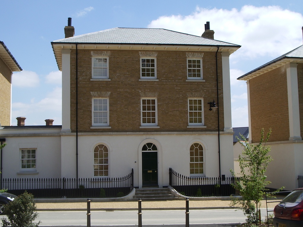 But anyway. It's not hard to notice when you've arrived in Poundbury, which is about 10 minutes further down the road than the happy giant. The building above is pretty much the first one you see, its pristine pastiche of Buckingham Palace somewhat at odds with the rest of Dorchester in much the same way that Robbie Coltrane would be somewhat at odds with the rest of Girls Aloud. Your reporter pulled into the first available road (easily identifiable as part of the "village" by the twee font on the street sign) and immediately found a parking spot, something which was soon to become apparent as a key design feature of the village.