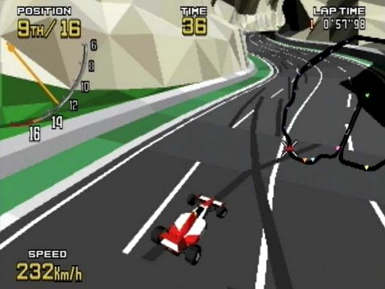 pioneering coin-op Virtua Racing had slightly glitchy graphics and