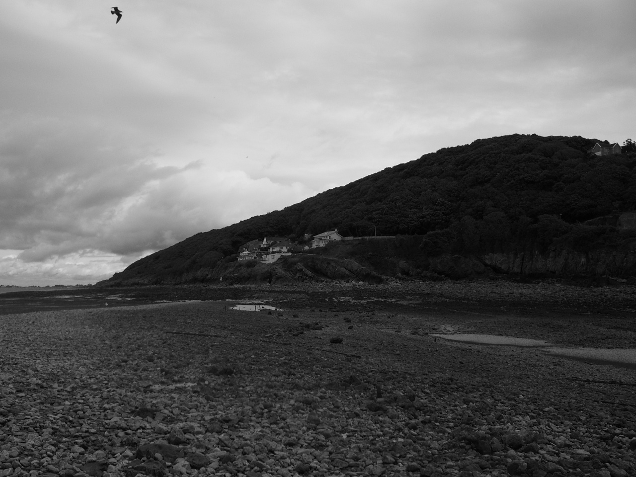 Suddenly, you feel very, very exposed, in a way you'd never imagined when surveying the scene from the high vantage point of the promenade. The safety of dry land is disappearing into the gloomy distance. Your goal is still a good few minutes away, and a quick burst of mental arithmetic tells you that if you carry on with your mission, you won't be back on the shore road out of the ocean's icy reach for at least another 40 minutes. It's a summer day, but it's overcast and grey and you're freezing in the wind. It dawns on you that if you were to put a foot wrong and go over on your ankle, your precious mobile phone isn't actually going to be much use to you. After all, it's hard enough to cross this ground on your own - what chance do you have of a couple of ambulance guys with a stretcher making it down the cliff, past the boulders, across the seaweed, over to you and back again like some kind of hellish black satire of It's A Knockout before the ocean comes to reclaim its territory?
