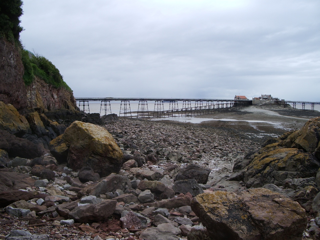 Some slightly more diligent research this time had revealed that Weston would reach two of its annual lowest tides on Friday and Saturday the 11th and 12th of August. Surrounded by days of much higher seas, these two isolated dates would see the ocean retreat far enough that the elevated pebble ridge (which was originally constructed to enable the sectioning-off of a boating area) connecting Birnbeck Island to the shore would become accessible, enabling the brave and sure of foot to walk across the sea bed and simply stroll up the slipway to the pier end. So on the Friday I packed my trusty digital camera, a mobile phone for emergencies and a warm jumper for the vicious winds that scythe along the Bristol Channel even at the height of a sun-baked summer, and set off for the low tide.