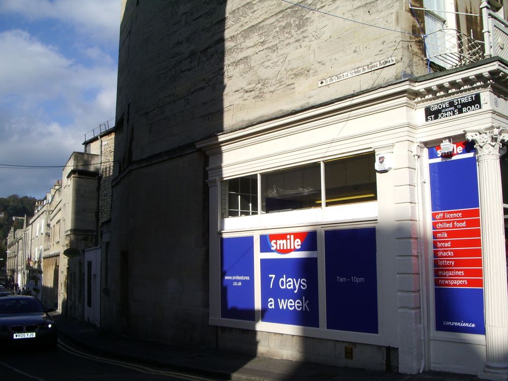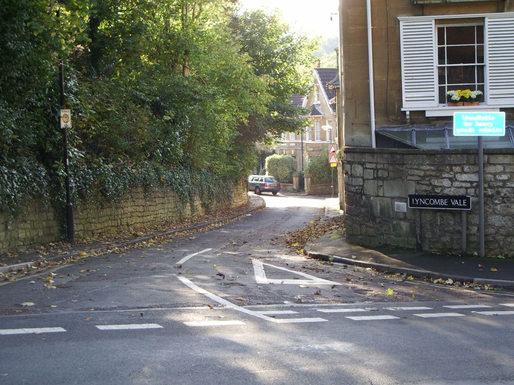 Despite having lived in Bath for 14 years now, I'd never even heard of Lyncombe Vale, and it turned out to be the oddest location in the game. Situated pretty centrally just off Widcombe Hill (see next entry), it nonetheless has a strange, isolated Royston Vasey sort of air about it. Approached from one end by a long, narrow and slightly sinister descent - passing by a private school hidden from sight in some dense woodland and with some very forbidding warning notices on its entrance gate at the bottom of the slope - it opens out into a long, quiet residential road with a man-made stream running mystifyingly down one side of it, past a large untended area of grass, bordered by an electricity station on which someone's painted an dangerously inviting smiley face. I felt disturbingly as if I was being watched by unseen, menacing eyes the entire length of Lyncombe Vale, and I was happy to move on to level 5.