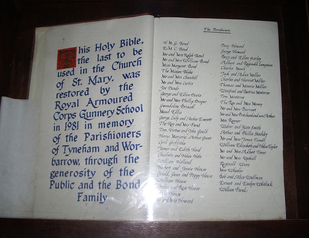 The second function of the church, though, is to act as a sort of memorial shrine to the life that the inhabitants had so unfairly taken away. The names of the villagers now line the church's inside walls like a yellow ribbon, and also grace a restored bible in the quire (where the names are lovingly listed in beautiful script, with "parishioners" spelt wrongly). It's a restrained, polite but unmistakeable protest, a permanent public rebuke to the treacherous authorities who betrayed and robbed the villagers, and it's quietly moving.
