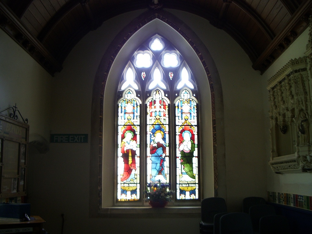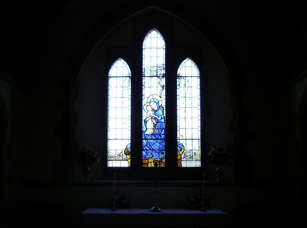One of the church's restored stained-glass windows.