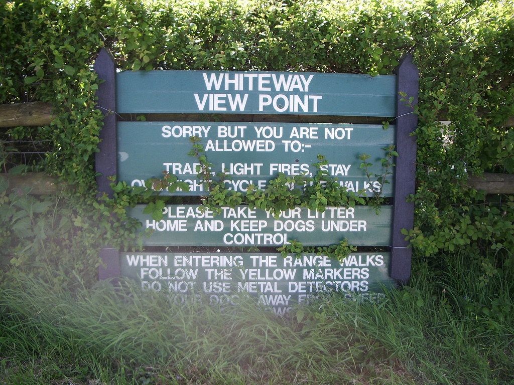 After various campaigns and government committee reports, in 1975 a fairly liberal amount of public access was restored to the village and to the coastal walking routes nearby on the Lulworth Range. (Lulworth Cove to Tyneham and back is a pretty manageable six-mile stroll on a nice day.) The village church and school were both restored as museums, with lots of archive materials from the pre-war days. (Particularly interesting is the schedule and inventory of one cottage and its contents, recording its condition in estate-agent detail shortly after the army took control. The faded, tattered original document is preserved under glass for viewing in the church, and can be examined in this extra-large pic.) You can now visit Tyneham on most weekends of the year, as well as certain special times. And you should.
