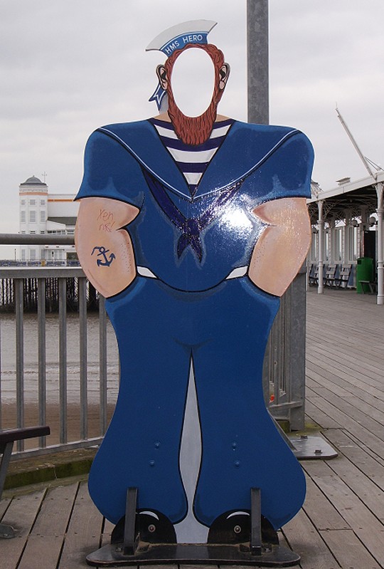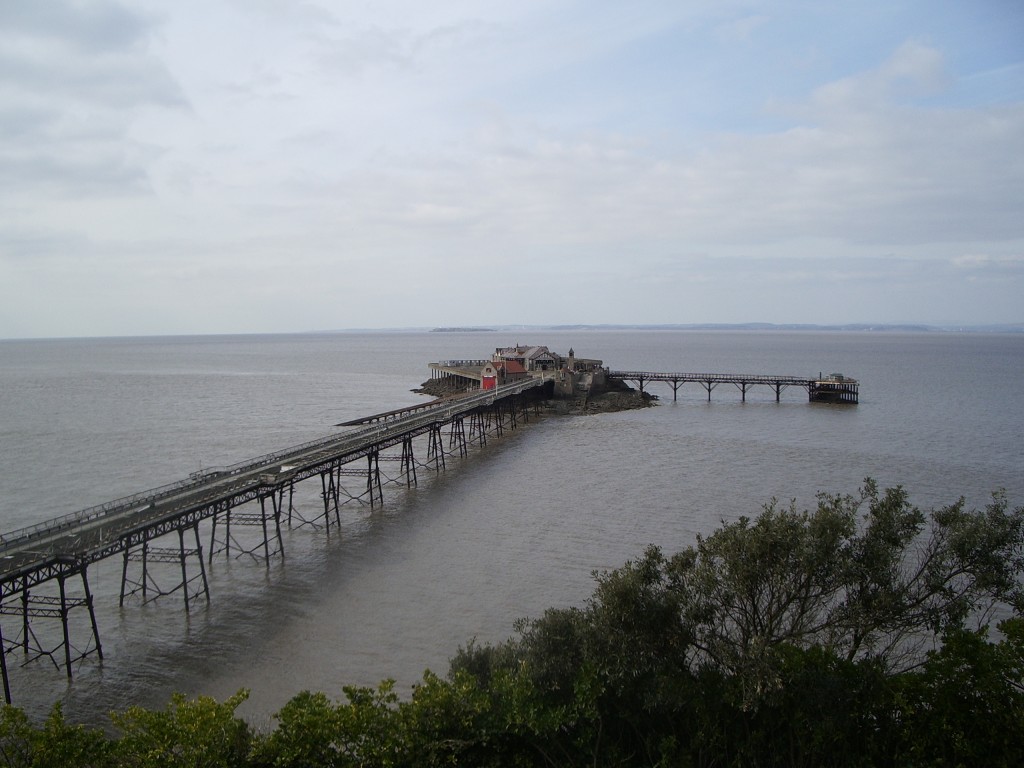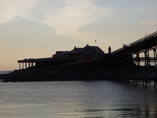 I got up at 6am, and left the house for my rendezvous with one of WoS's sinister network of shadowy agents in an industrial-estate carpark in a suburb of Bristol. After taking delivery of a package from the agent and discussing the subversion of various government departments for some time over a Bacon-And-Egg McMuffin, we parted company and I headed off towards Weston. Having recently been pondering the pier trip again by sheer coincidence, I'd checked the tide times about 10 days earlier, and knew that the low tide was due at 11.39am. I'd presumed that it would be low enough to permit access to the pier end for some time before that, and hence arriving in the resort at around 9.30 would give me plenty of time to reconnoitre and prepare unhurriedly for the mission. Heavy roadworks on the M5 meant that I didn't actually arrive at Birnbeck until 10am, where I was surprised and dismayed to notice that the sea was still lapping inconveniently at the foot of the cliffs. It dawned on me that perhaps the 10-day gap had slightly altered the tide timetables, so I decided to head back into town and kill an hour or so in the arcades until things caught up.