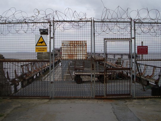 Of course, he did mean that, and about 15 frankly terrifying minutes later, we'd all picked our way gingerly across the Slippy-Slidey Knife-Edged Rocks Of Certain Death and out to the island. The slipway down to the ground was completely free of razor wire, fences or dire warnings of imminent fatality, presumably on the grounds that nobody would ever be so spectacularly, suicidally stupid as to think of trying to approach the pier by such a route, and we strolled in considerable relief up the concrete ramp and into what very much appeared to be a real-life set from a classic-era Scooby Doo cartoon.