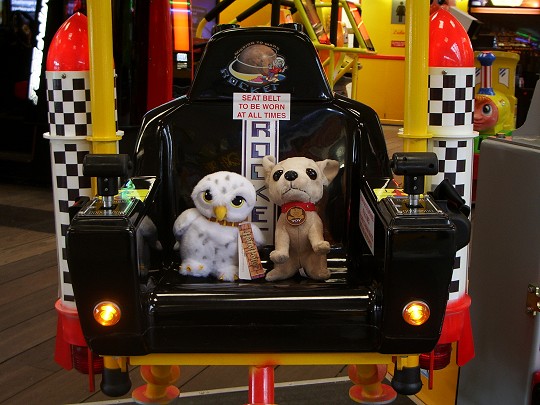 Time quickly passed - your reporter is rarely happier than when he's in a traditional-style English seaside resort, even in a freezing-cold off-season March - while I shovelled handfuls of 2p pieces into the penny-falls machines and liberated a bunch of cuddly toys from the Perspex prisons of the crane-grabbers, including a rather sweet official Harry Potter owl (don't ask me) and a little chihuahua with a head so gigantic that it could only sit up and beg on its hind legs, toppling forwards onto its face if it tried to stand up in a normal fashion.