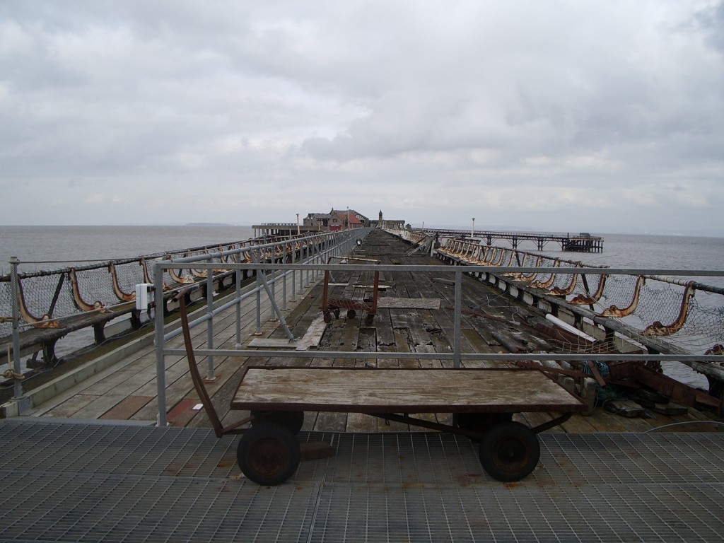 But anyway. Having explored sufficiently, we left the island and retraced our steps back to shore, spent the rest of the day recovering from our difficult ordeal at a table outside a ("Café" - Ed) with a few refreshing ("Glasses of Tizer" - Ed) and went home, and that was that. But Birnbeck Pier has haunted your correspondent ever since, and I vowed to return sometime across the Slippy-Slidey Knife-Edged Rocks Of Certain Death and record the ruins for posterity, by which I mean the viewers of WoS. (Whom I presciently foresaw would one day exist.) And by a fortuitous concurrence of events, it appeared that an otherwise-unremarkable Wednesday in the middle of last month was going to be that day.