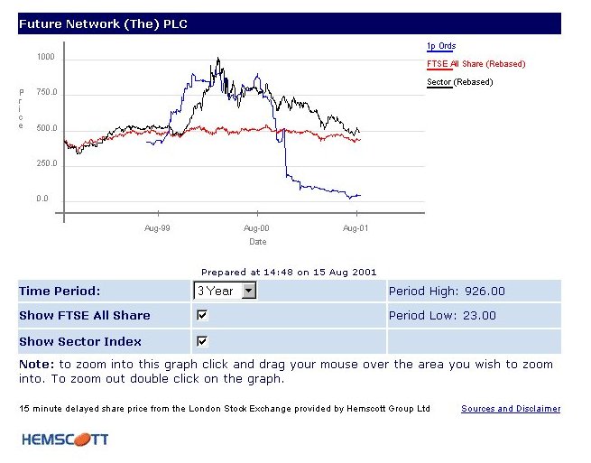 It has, it must be said, been a pretty grim year for the media in general, and not just in the videogames arena. Advertising spends are drastically down, share prices are following them, and everyone seems to have belatedly realised that the internet isnt going to provide a major revenue stream after turning a blind eye to the total lack of a viable business model for years. Venture capitalists who were writing blank cheques 18 months ago to anyone with a website are hotfooting it away from the whole media sector like a dog from a carwash. But even in a world of nightmares, nobodys having bad dreams more vivid than The Future Network, nee Future Publishing. Switching their brand focus towards the net just in time to get caught in the dotcom crash, the Bath-based publisher has seen its share price collapse by a breathtaking 97% over the last year or so (hugely out-plummeting the falls of the sector in general see fig 1), fuelled by accounting irregularities, profits warnings and massive debt brought about by unwise and excessive investment as well as difficult market conditions. From a peak market capitalisation value of around £1.3 billion, you could now (at time of writing, the last-resort rights issue which will more than double the number of shares in the company notwithstanding) snap up every single share in TFN for a bargain £35 million - or somewhere roughly in the region of £300,000 per magazine published. (The whole companys value is considerably less, in fact, than Time/AOL just paid for a single title, the companys former flagship Business 2.0, which was responsible for a fifth of the firms total revenue last year.) The share price has continued to fall despite several drastic measures the company shed close to a quarter of its entire workforce (throwing 500 people out of work), closed down dozens of magazines and dispensed with the services of its Managing Director, Mike Frey, and Financial Director Ian Linkins (and more recently, rather quietly, chairman and founder Chris Anderson), all without improving the Citys confidence in Futures future - shattered as it was by that darkest of all possible events to the stock market, a series of consecutive profits warnings just weeks apart. (And of course, there have been less drastic measures too. Among the first casualties of the cutbacks were the companys hired pot plants I dont know about you, readers, but the sheer senseless, impatient decadence of renting out pot plants always strikes this reporter as one of the earliest signs that a companys lost all touch with reality.) But we know all this already. The most puzzling thing about it all, though, is that on the surface, its difficult to see exactly whats changed at Future. The company is still far and away the market leader in its core business - videogames magazine publishing and accounts for every other copy of a videogames magazine sold anywhere in the UK. The management team hasnt changed that significantly, the way the company does business hasnt changed any, and its achieved considerable growth at relatively low cost, by snapping up lots of other firms and properties with equity when that equity was still worth something. So why is a company so popular a year ago such a pariah now? The only person properly qualified to answer that question is the former editor of Amiga Format, Futures long-serving CEO Greg Ingham. So, in a 90-minute interview at the leather-upholstered heart of the Future management bunker, I asked him. CTW: So, Greg. How on Earth did you get into this Godawful mess, then? GI: Well, firstly, if you look at the competitive landscape I wouldnt change where we are now for anywhere weve been before were in a better place now than previously, at any point you care to choose. CTW: Arent you just holding your competitive position because everyone else cant get out of the games-magazine business quick enough? GI: Yeah, but if EMAP had had the profitability that Future has had even in this downcycle, then they wouldnt be getting out of the market. You dont sell from a position of strength, you sell from a position of weakness. CTW: Its odd to hear you talking about "profitability" in the current circumstances. GI: You know, theres any amount of - entirely understandable - complexity and misinterpretation of our numbers. The games division, and the UK business as a whole, has been profitable for many years, in terms of actual operating profit. Now, Im not happy with the profit its made, and Im not claiming that its a major achievement or anything of that sort theres still a hell of a lot of work to do. But I think the City, the analysts, and increasingly the employees here, will realise the difference between the sort of technical writeoffs weve had to make with goodwill and suchlike, and actual cash-in-cash-out operating profit in terms of the continuing business. CTW: So if the business is inherently profitable, and all the losses are these abstract non-cash factors like goodwill, how did you manage to land yourself with such a big cash debt that it cost you close to half your entire staff, a third of your magazines, a Managing Director and nearly the whole company? GI: Of course there have been some one-off items the cost of closing the German business, the cost of selling Business 2.0, the cost of the redundancy programme. All of those are cash items, theyre real costs but not recurring costs. Also, debt isnt inherently a bad thing we all have debt in our lives. But as long as you can service that debt, and as long as the provider of the debt believes that you can service it, then it isnt necessarily a bad thing. We had a lot of debt when we bought the company from Pearson, some of which was paid down at the flotation and some of which was paid down from profit in 1999, but we also racked up costs by acquisitions and so on, to the extent that we had a debt which in other circumstances would have been straining us, but just about manageable. Simultaneous to tha